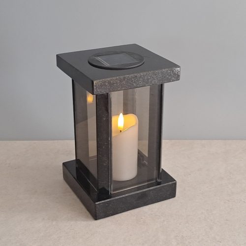 Lampion wykonany z naturalnego granitu typu szwed, stali nierdzewnej szkła. wszystkie materiały z których wykonany jest lampion są bardzo odporne na warunki atmosferyczne.